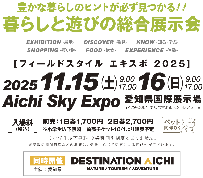 FIELDSTYLEのおひざ元、愛知のローカルフィールドやガレージメーカーの魅力がここに集結。DESTINATION AICHI(デスティネーションアイチ)、今年も開催!