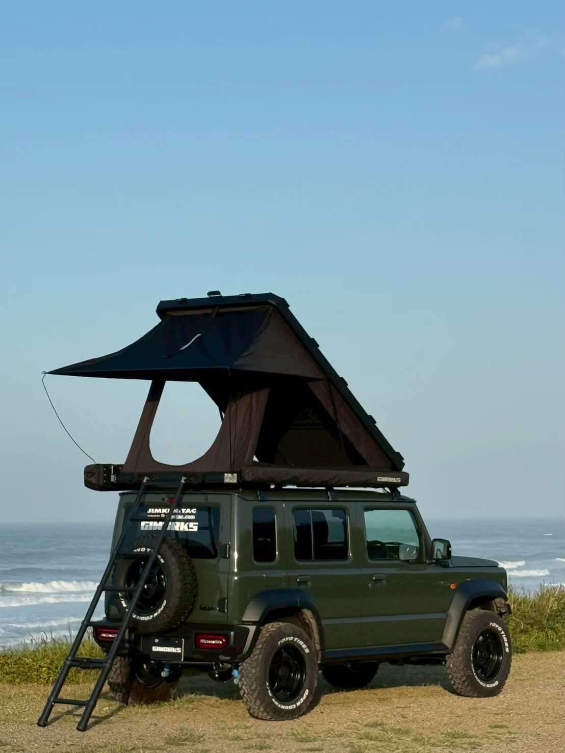 GIWORKS製ルーフトップテントはアルミニウム合金のテントで非常に頑丈で耐久性があります。本製品の高さは閉じた状態は業界トップクラスの薄さに抑えられておりこれにより、より薄く、より美しいデザインを実現しました。全体の高さを抑えることで、ルーフテント上部にトップバーがあり、移動の際はより多くの荷物をルーフトップ上部へ積載することができます。