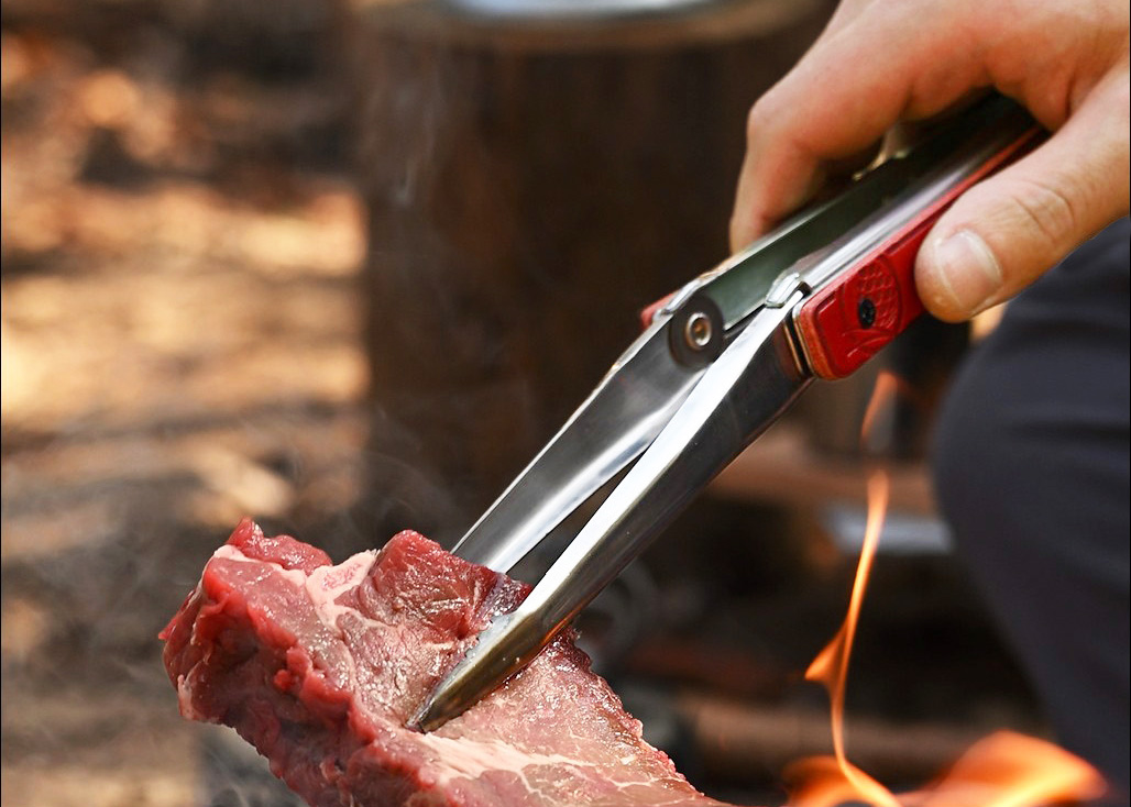 オールステンレス製の堅牢なトングに、栃木レザーのグリップカバーを組み合わせた一本。柔らかなトマトから分厚いステーキまで確実につかむ先端「マルチファング」を採用し、“つかんで離さない”を追求して開発された、キッチンでもアウトドアでも活躍するギアです。